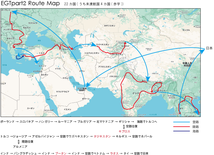 そこで今年はポーランドのワルシャワまでスタートラインを戻し、133日間かけてタイのバンコクを目指します。